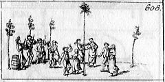 Nro. 608: Ein Bauerntanz von acht Bauern und Bäuerinnen, nebst drey Musikanten und verschiedenen Bäumen [aus Holz], mit der Kiste 1 fl. 48 kr. Ein dergleichen Tanz, wo die Figuren und Bäume von Zinn gemacht und schön lakirt sind, 1 fl. 4 kr |