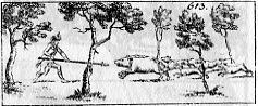 Nro. 613: Eine Schweinshetze von 1 Schwein, 1 Jäger, 4 Hunden und 7 Bäumen [aus Holz], kostet mit der Kiste 1 fl. 36 kr. Detto von Zinn und gemalt, 1 fl. 6 kr. |