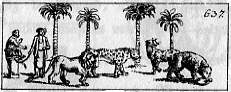 Nro. 637: Fremde Thiere mit ihren Wärtern, schön nach der Natur von Holz gemacht und gemalt, mit Bäumen in einem Kästchen, kosten 2 fl. 12 kr. Dergleichen von Zinn und gemalt, 1 fl. 48 kr. |