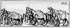 Nro. 647: Zwölf Stück angebundene Pferde, so wie sie im Feld oder im Lager stehen, von Holz und gemalt, mit dem Kistchen 2 fl. Dergleichen von Zinn, 1 fl. 8 kr. |