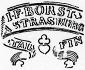 Quellen: Adolphe Riff: Les``Etains Strasbourgeois du XVIe au XIXe Siècle, A. F. Kahn, Strasbourg 1925 Erwin Hintze: Die Deutschen Zinngießer und ihre Marken Band VII (Süddeutsche Zinngießer III), Leipzig, K. W. Hiersemann, 1921 - 1931 Erwin Ortmann: Zinnfiguren einst und jetzt, Edition Leipzig 1973 Curt F. Kollbrunner: Zinnfiguren - Zinnsoldaten - Zinngeschichte, Hirmer-Verlag München 1979 Heinz Schenzle: Sigel-Bestimmungsbuch, Freunde der Plassenburg e. V. Kulmbach, 1987 Erhard Schraudolph: "Zopfzeit, Befreiungskriege und Gesellschaftsgarten - Zinnfiguren zwischen Aufklärung und Restauration" in 75 Jahre Deutsches Zinnfigurenmuseum - Geschichte der Zinnfigur - Geschichte mit Zinnfiguren, Freunde der Plassenburg e. V. 2004 |