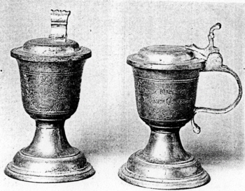 | Bier-Kannen der Drechslerzunft um 1810, 12,5 cm hoch | Bier-Kanne, 28 cm hoch | Bier-Kanne | |