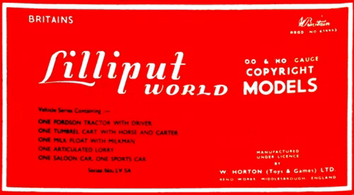 | Am 26. März 1946 wird im Land-Register die Pacht des Grundstücks Reno Works, Rosslyn Crescent, Wealdstone, Middlesex, mit der Firma W. Horton (Toys and Games) Ltd. eingetragen. Diese Firma stellt die Liliput-Fahrzeuge (Autos, Lastwagen und andere Fahrzeuge) im Druckgussverfahren her. | ||