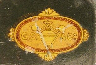 ![]() Fabrikmarke 1902 als Schiebebild mit Fliehkraftregler G.C.&Co. (Foto Jürgen Donath) |