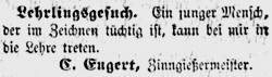 nach, bewirbt sich am 26. August 1855 um eine Zinngießer-Konzession