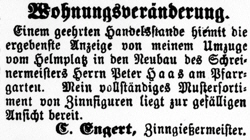 Neue Anschrift ab dem 21. Februar 1868 ist