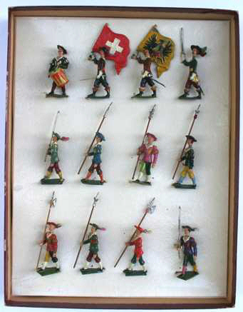 Packung "Landsknechte", Karton 21,1 x 27,6 x 3,5 cm vollplastische Figuren, Fußer 4,8 cm hoch |