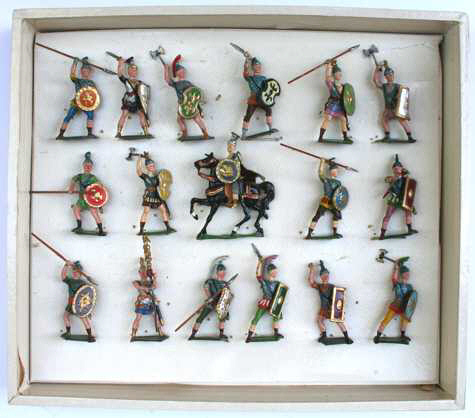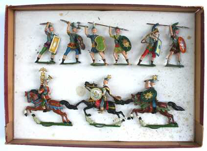 Packung "Römer", Karton 24,3 x 17,2 x 3,3 cm vollplastische Figuren, Fußer 4,8 cm, Reiter 6,5 cm hoch |
