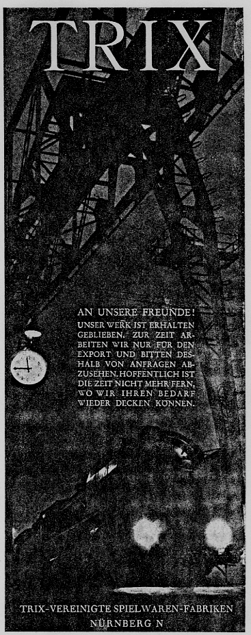 Trix-Vereinigte Spielwaren-Fabriken - Werbe-Anzeige Januar 1947