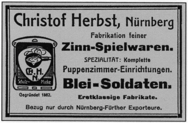 Er läßt die Firma Christof Herbst am 27. März 1900 in das Firmenregister eintragen und ist als Zinnspielwarenfabrikant Inhaber der Firma. |
