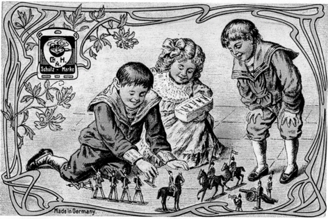 Zinnfiguren und Zinnspielzeug: Vollplastische Bleifiguren, Puppenstuben-Zubehör (Schieferformen wurden hauptsächlich von Johann Christoph Friedrich Herbst, der ein guter Zeichner und Graveur war, graviert). |