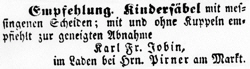 ![]() Anzeige im Fürther Tagblatt Nr. 196 vom 8. Dezember 1848 und Nr. 197 vom 9. Dezember 1848 |