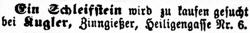 1889 | Thomas Kugler ist in die Heiligengasse 25 umgezogen. |