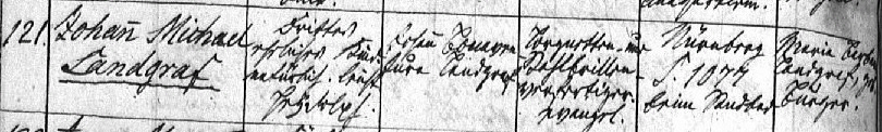 1819 | Johann Bonaventura Landgraf wird unehelich geboren am 19. Januar 1819 in Fürth als Sohn des Kalkmeisters Johann Thomas Landgraf (≈ 11. Januar 1787 in Wöhrd; † 13. Januar 1832 "entleibt sich selbst durch einen Gewehrschuß") und der Walpurg (Walburga), geb. Steinmetz (* 27. Dezember 1779 in Fürth), die er am 27. August 1821 heiratet. | ||||||||||||||||||||||||||||||||||||||||||||||||||||||||||||||||||||||||||||||||||||||||||||||||||||||||||||||||||||||||||||||||||||||||||||||