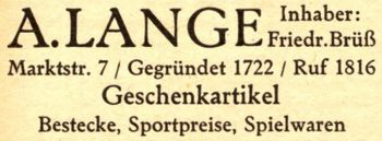1893 | Inhaber der Firma Lange ist jetzt Adolph Lange. |