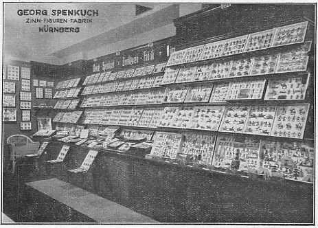 Herr Wilhelm Schwarz brachte das Unternehmen weit über den Rahmen des rein handwerklichen Umfangs hinaus, und der heutige Seniorchef genießt vor allen Dingen als Vorsitzender des Verbandes Deutscher Zinnfigurenfabrikanten E. V., dem er seit der Gründung desselben vorsteht, höchstes Ansehen und Vertrauen unter seinen Kollegen. Unter seiner Leitung konnte der Verband, der in diesem Herbst sein 25jähriges Bestehen feiert, manche Gefahr von der deutschen Zinnfiguren-Industrie abwenden. Seit 30 Jahren steht ihm sein Schwiegersohn Herr Schmidt zur Seite, der mit Umsicht und Geschick an der Entwicklung der Firma mitarbeitet. Die Erzeugnisse der Firma Georg Spenkuch gelten seit Jahrzehnten als Qualitätsmarke und genießen Weltruf. Die Fabrik unterhält zahlreiche Vertreter und Musterlager im In- und Auslande; ihre Ware geht nach aller Herren Länder. |