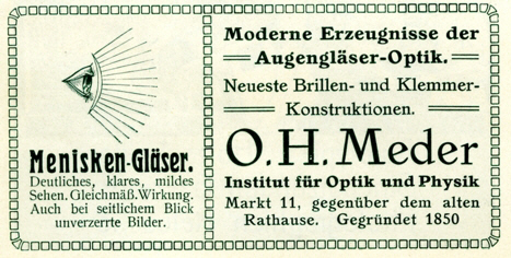 | 1904 | Die Firma O. H. Meder ist im Adressbuch als Optisch-mechanisches Institut eingetragen. |