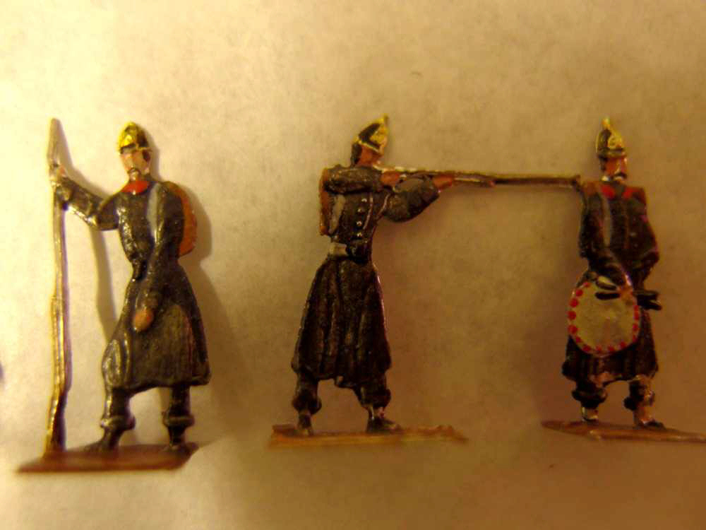 "Im Thaulow-Museum an 30Tausend (angeblich) Stück 18-mm-Figuren, die eine Frau v. Rappath aus Schwerin i. M. vor Jahren dem Museum übermachte. Darstellung meistens Figuren für 1860-70, Deutsche Geschichte einschließl. Österreicher, sodann 30-mm-Reiterfiguren der Kaisergarde 1813 Nap. Dem Graveur und Zinngießer dieser 18-mm-Typen muß man noch nachspüren. Bisher sind in Norddeutschland für die ältere Zeit diese Typen einzig. Ob es ein Schweriner war etwa vor 50 oder 60 Jahren? Wer weiß es? - " | |