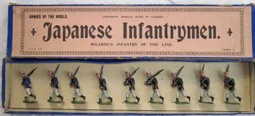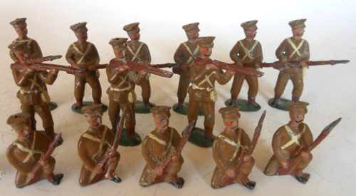 Bekannte Figuren nach Leonard W. Richards (1970): Matrosen der Royal Navy, marschierend mit Gewehr über der SchulterBritische Infanterie, Burenkrieg, kniend, liegend und stehend, schießend Britische Linieninfanterie, Burenkrieg, mit festem Bajonett im Anschlag Britische Linieninfanterie marschierend Britische Linieninfanterie in Habachtstellung Britische Linieninfanterie kniend und schießend Britische Linieninfanterie stehend, schießend Pfadfinder Garde-Grenadiere in Habachtstellung Garde- Grenadiere marschierend Garde-Grenadiere kniend, schießend Gordon Highlanders, stehend schießend Imperial Yeomanry Japanische Kavallerie mit Offizier Japanische Infanterie kniend, schießend Japanische Infanterie stehend, schießend Krankenschwestern des Army Medical Service Pfeifer der Gordon Highlanders Royal Marine Artillerie marschierend Russische Kavallerie Russische Infanterie im Mantel, marschierend, Gewehr über der Schulter Russische Infanterie stehend, schießend Russische Infanterie kniend, schießend |