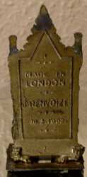 ![]() ![]() 7 cm hoch, goldfarbene Oberfläche, die Rückseite des linken Modells ohne Beschriftung, das rechte Modell beschriftet mit "MADE IN LONDON - J.Renvoize - 10.3.1902" - das Bild links aus The Coronation Chair and Stone of Scone, das rechte Bild von Norman Joplin |