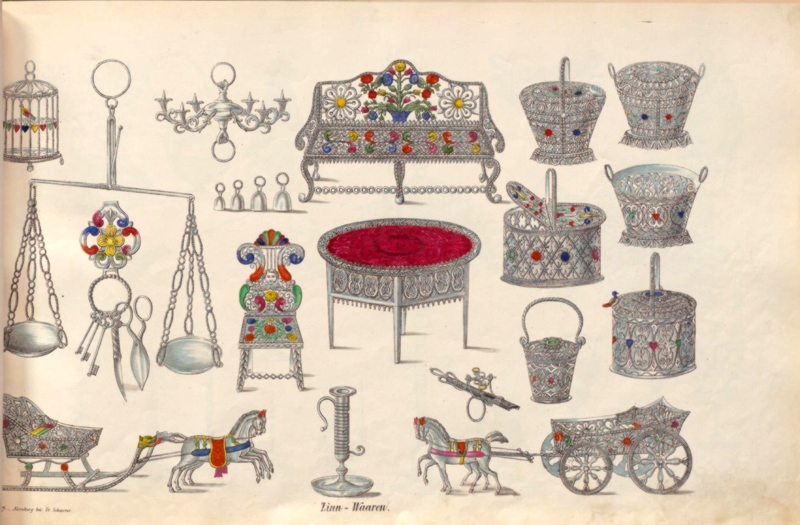 | Quelle: Württembergische Landesbibliothek: Musterbuch der Nürnberger Industrie (ca. 1840) online Ich danke Stefan Röttger, Nürnberg, sehr herzlich für den Hinweis! |