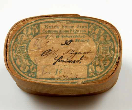 Quellen: Leipziger Zeitung Nr. 143 vom 16. Juni 1847, Nr. 149 vom 23. Juni 1847, Nr. 112 vom 22. April 1849, Nr. 241 vom 29. August 1849, Nr. 256 vom 13. September 1849 und Nr. 263 vom 20. September 1849 (Google) Anzeige im Leipziger Tageblatt und Anzeiger Nr. 206 vom 25. Juli 1849 (Google) Deutsche Allgemeine Zeitung Nr. 110 vom 20. April 1849 und Nr. 111 vom 21. April 1849 (Google) Katalog der Industrie-Ausstellung Leipzig 1850 Die deutsche Industrie-Ausstellung in der Central-Halle zu Leipzig, Leipzig 1850 (Google) Katalog der Industrie-Ausstellung Leipzig 1850 (slub-dresden) Neues Leipziger Adreßbuch auf das Jahr 1851, Verlag von Friedrich Fleischer, Leipzig Adressbücher Leipzig (adressbücher.sachsendigital.de bzw. Sächsische Landesbibliothek - Staats- und Universitätsbibliothek Dresden (SLUB) digital.slub-dresden.de) Die deutsche Industrie-Ausstellung in der Central-Halle zu Leipzig, Leipzig 1850 (Google) John G. Garratt: The World Encyclopedia Of Model Soldiers, The Overlook Press, New York 1981 Heinz Schenzle: Sigel-Bestimmungsbuch, Freunde der Plassenburg e. V. Kulmbach, 1987 Ulf Leinweber: Die kleine Figur - Geschichte in Masse und Zinn, Staatliche Kunstsammlungen Kassel, 1985 Krannich/Vogel: Sächsische Zinnminiaturen, Deutscher Verlag für Grundstoffindustrie, Leipzig-Stuttgart 1994 Herzlichen Dank an Alfred R. Sulzer für das Foto der Spanschachtel! |