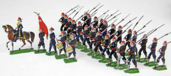 | Alfred Sulzer teilt dazu mit (9. Juni 2020): "Bei der türkischen Infanterie in Parade handelt es sich mit absoluter Sicherheit um Figuren von Heinrichsen. Ob Louis Schwarz diese in seiner Packung verkauft hat, wissen wir nicht, ist aber eher unwahrscheinlich." | |