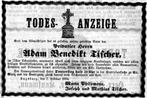 | 1864 | Adam Benedikt Tischer stirbt am 7. Februar 1864. |