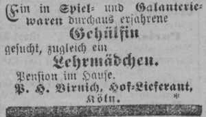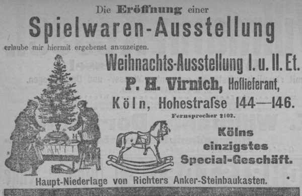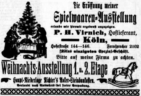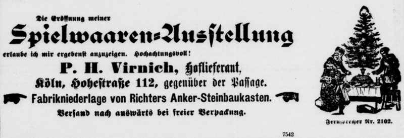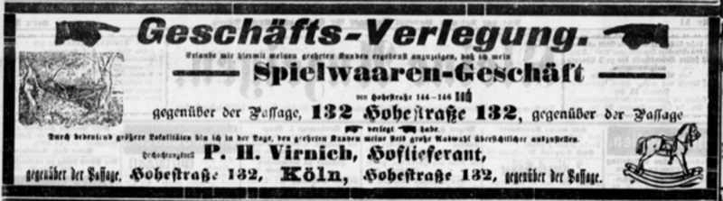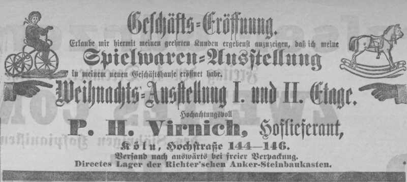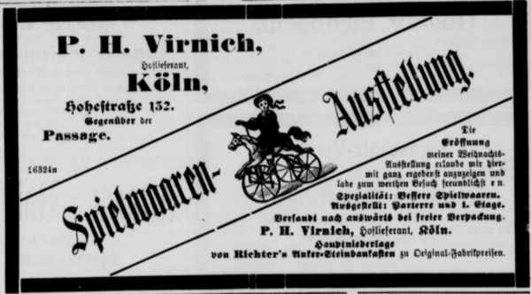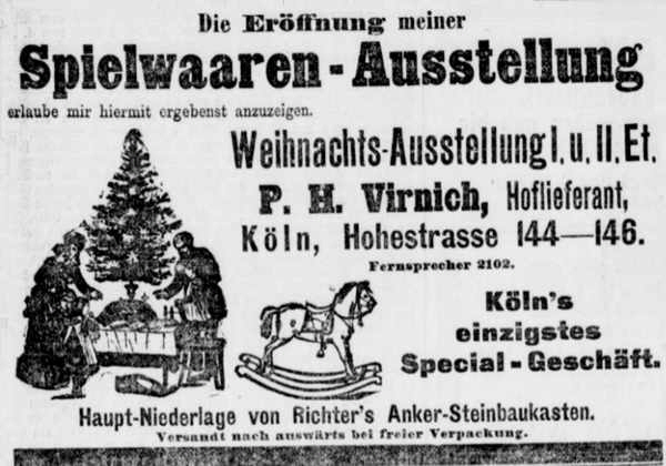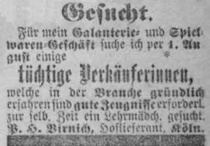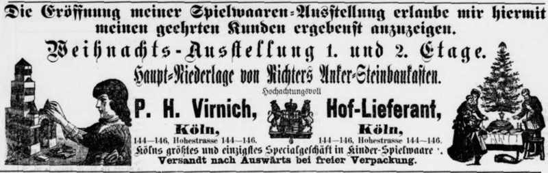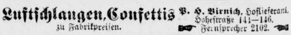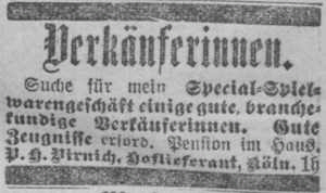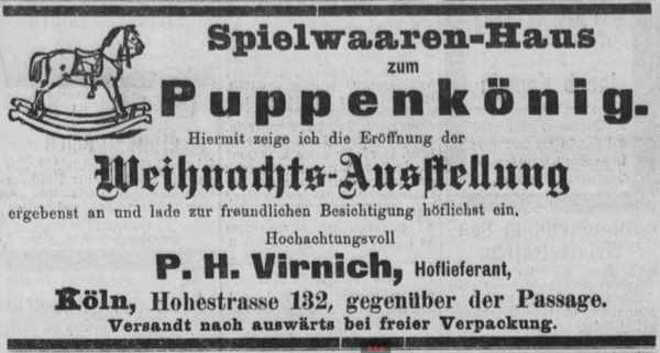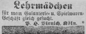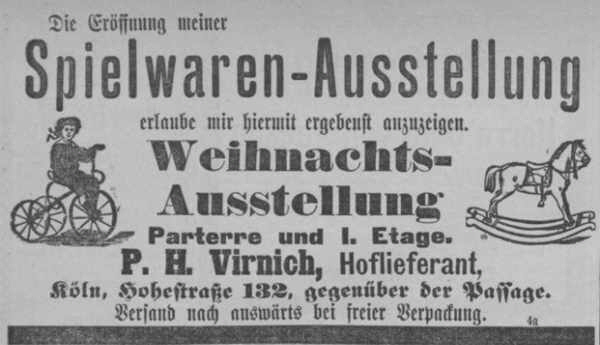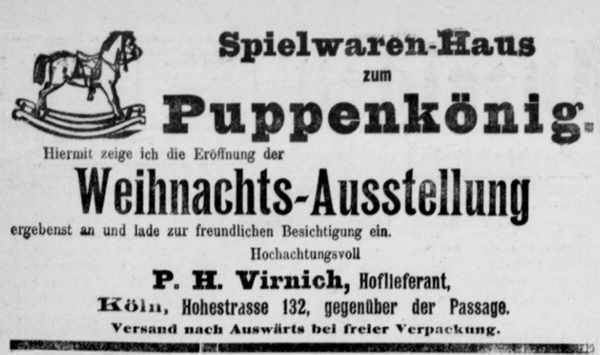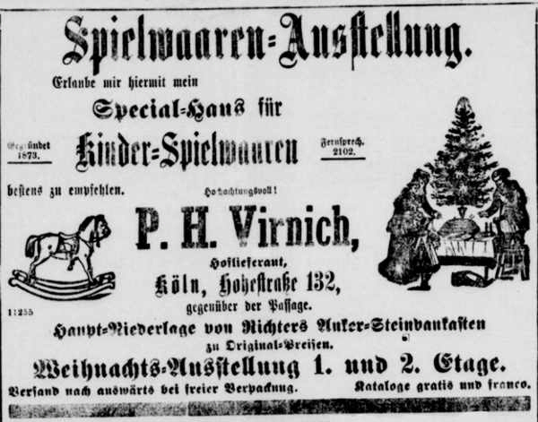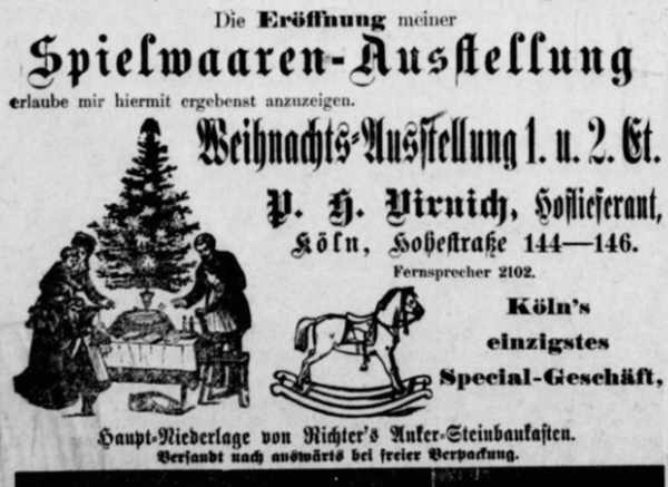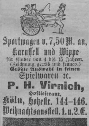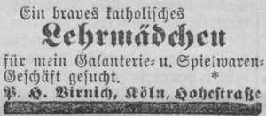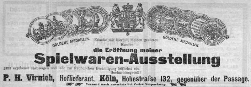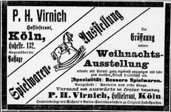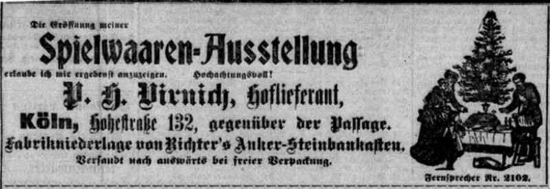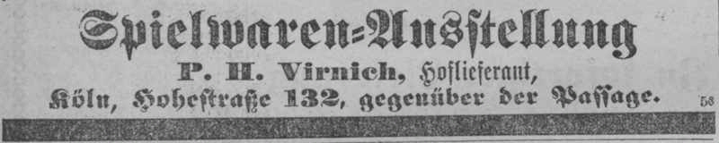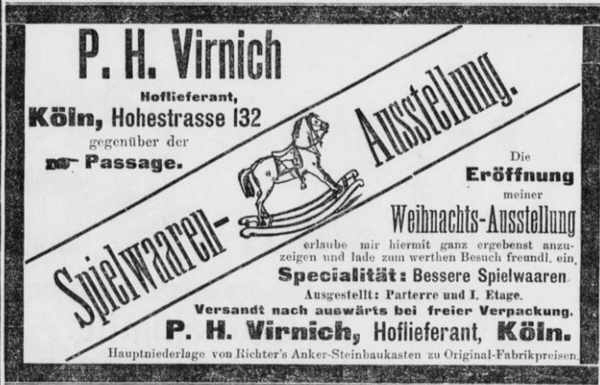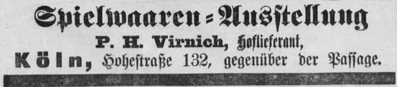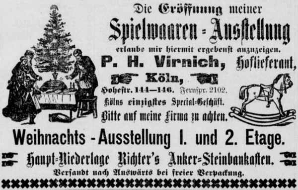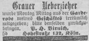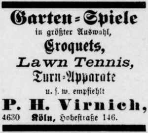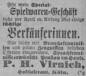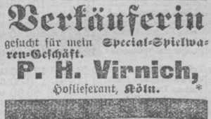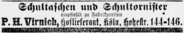 | Virnich, Paul Hubert - Zeitungsanzeigen 1886 bis 1900 | |