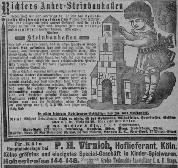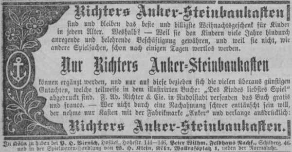 | Gemeinschaftswerbung in der Kölnischen Zeitung vom 9., 13. und 16. Dezember 1891 | |