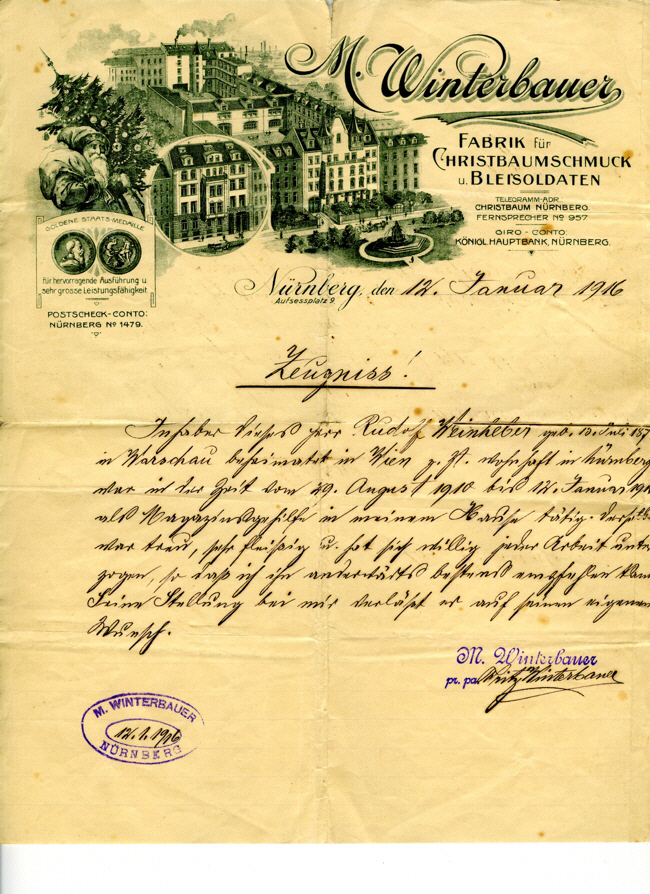 Winterbauer, M. - Christbaumschmuck- und Bleisoldatenfabrik - Nürnberg