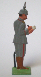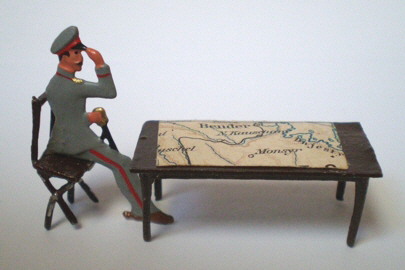 Zinnfiguren: Porträtfiguren I. Weltkrieg (Wilhelm II., Hindenburg), plastische Fahrzeuge, Vorspanne und Zubehör: 7jähriger Krieg, 1870/71, napoleonische Kriege, assyrischer Streitwagen, 1. Weltkrieg; Jahrmarktsbuden, Häuser, Burgruinen etc. Zeichner: Geißler, Leipzig Graveur: Ludwig Frank, Nürnberg |