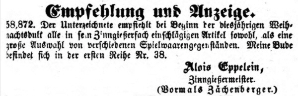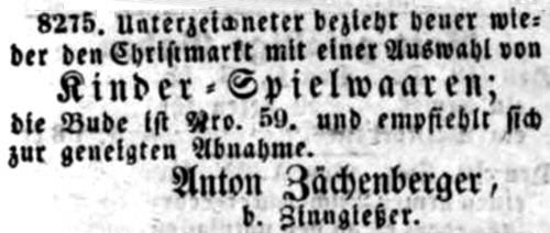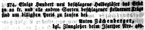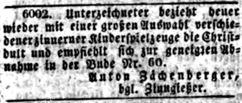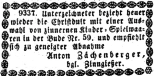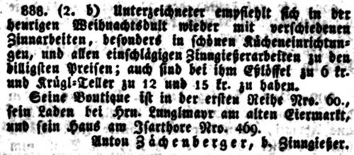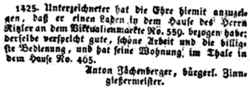| 1817 | Anton Zachenberger wird Zinngießermeister. |
