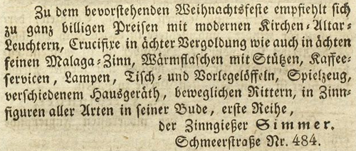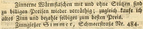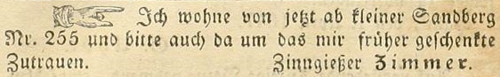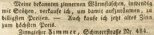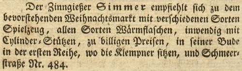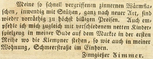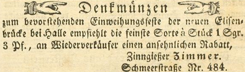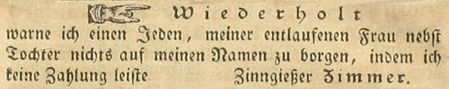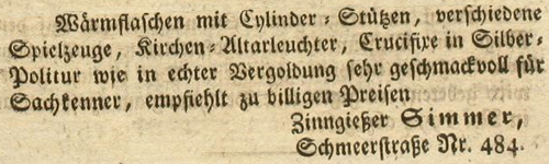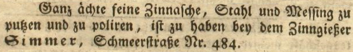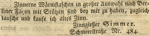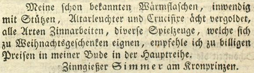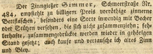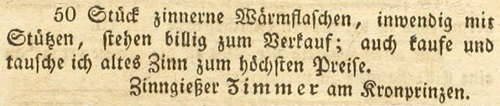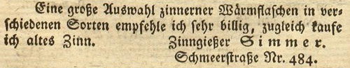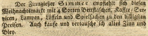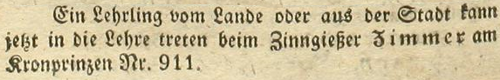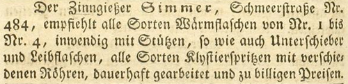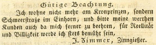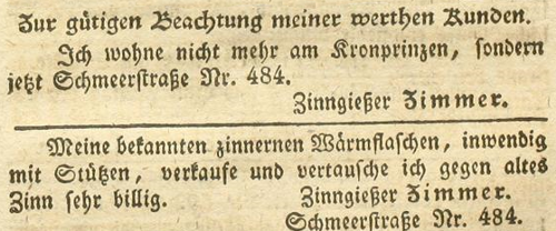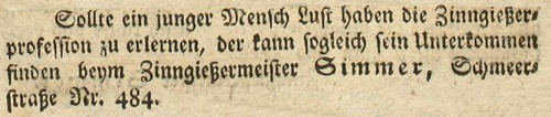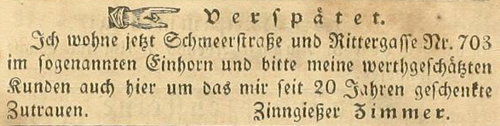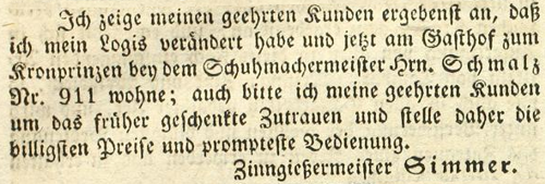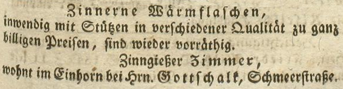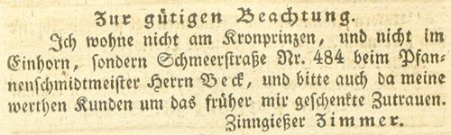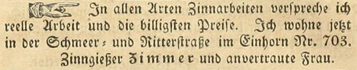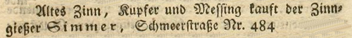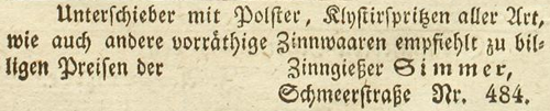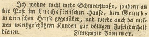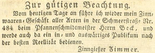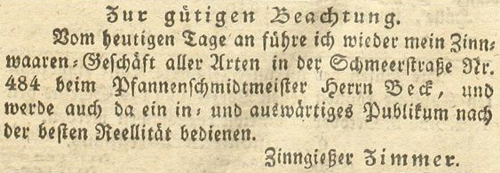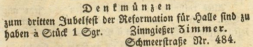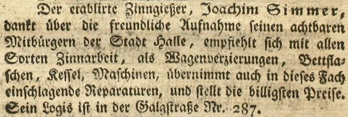 | Zimmer (Simmer), Joachim - Halle (Saale) Anzeigen im Hallischen patriotischen Wochenblatt |
