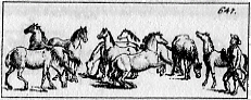 Nro. 647: Zwölf Stück angebundene Pferde, so wie sie im Feld oder im Lager stehen, von Holz und gemalt, mit dem Kistchen 2 fl. Dergleichen von Zinn, 1 fl. 8 kr. |