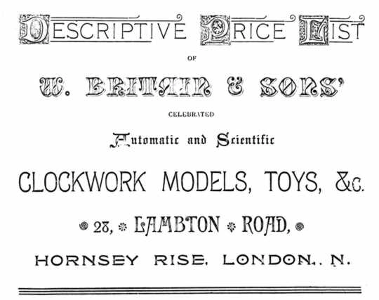 | William Britain sen. und William Britain jun. bezeichnen sich beide als Model-Manufacturer [Spielzeug-Fabrikanten]. | ||