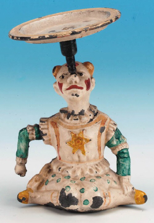 eine Untertasse. Nach Aufziehen der Figur hebt er die Tasse an seinen