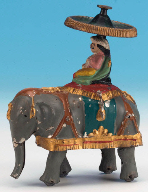 ein gut gemachtes Modell eines Elefanten mit einem Reiter auf dem