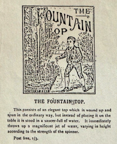 Wasserstrahl aus, dessen Höhe je nach Drehgeschwindigkeit des Kreisels