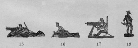 | Maschinengewehrbatterie (es gibt Packungen mit 2 Lafetten, 4 Maschinengewehren und 14 Mann) | |