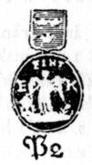 Meisterzeichen des Eric Pettersson Krietz vom 1. Februar 1754 bis 13. August 1805 (Bruzelli) Er stempelt sowohl drei- als auch vierfach [siehe unten] |